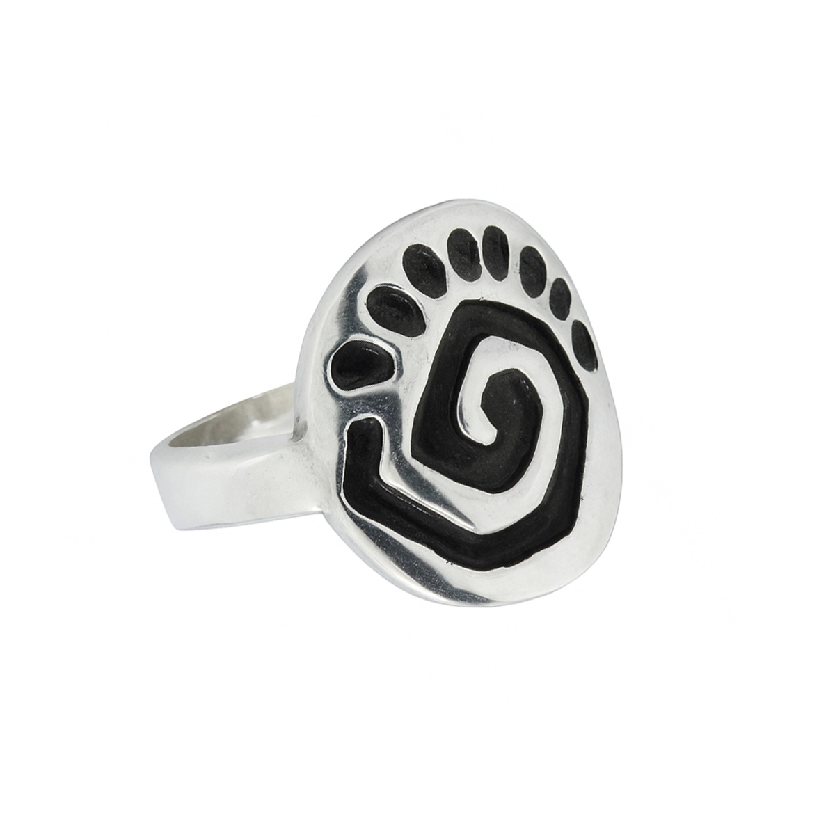 El Anillo Sirkay está elaborado en plata 925 con detalles de plata envejecida que realzan su diseño ancestral.