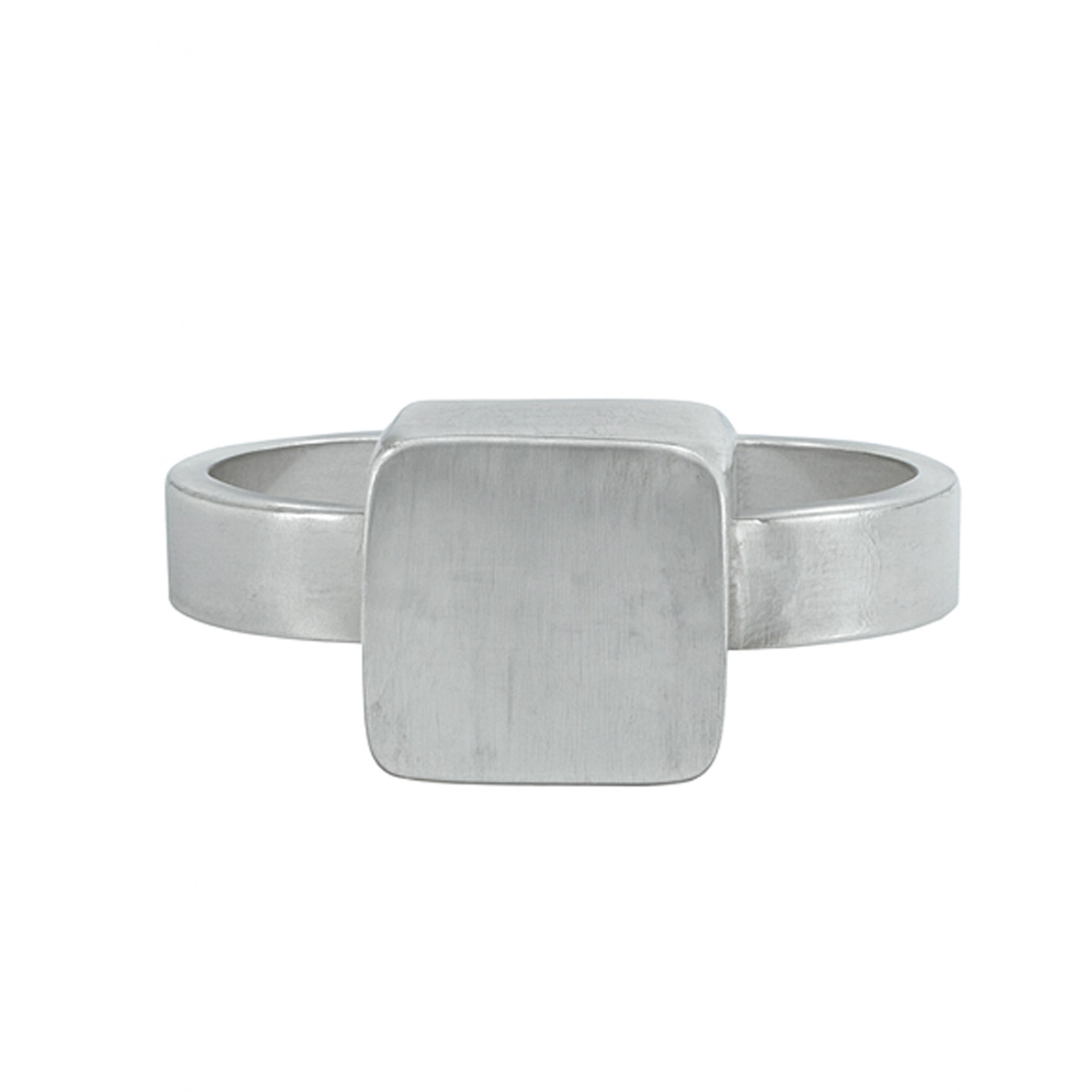 Confeccionado en plata 925, su montura cuadrada de 8×8 mm sobre una banda de 3 mm simboliza el equilibrio, el orden y la estabilidad.